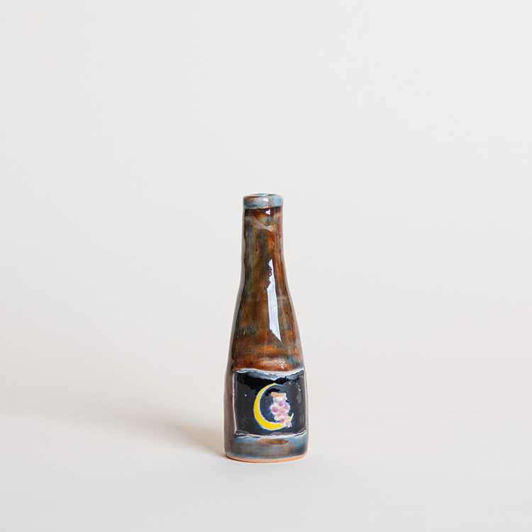 와인병의 형태를 도자기로 빚어 그림을 그려 넣었으며,