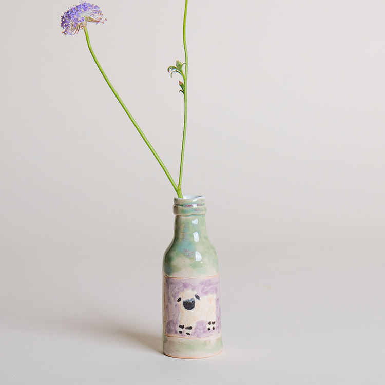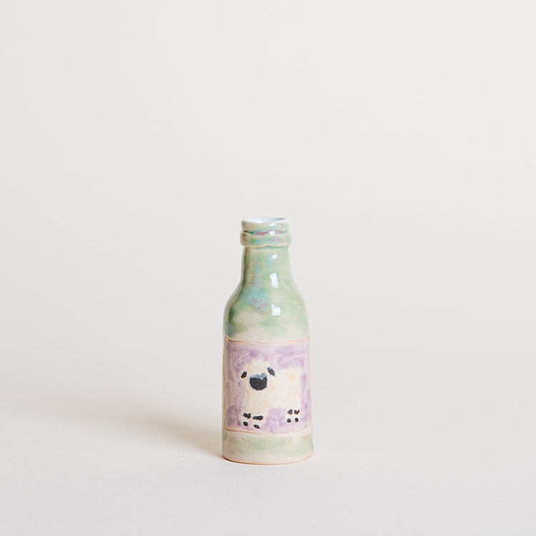 와인병의 형태를 도자기로 빚어 그림을 그려 넣었으며,