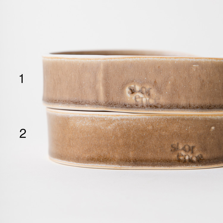 동일한 유약이나 온도와 두께에 따라 질감이 다른 유약으로, 1번(조금 매트한 질감), 2번(광택의 질감) 중 선택하실 수 있습니다.