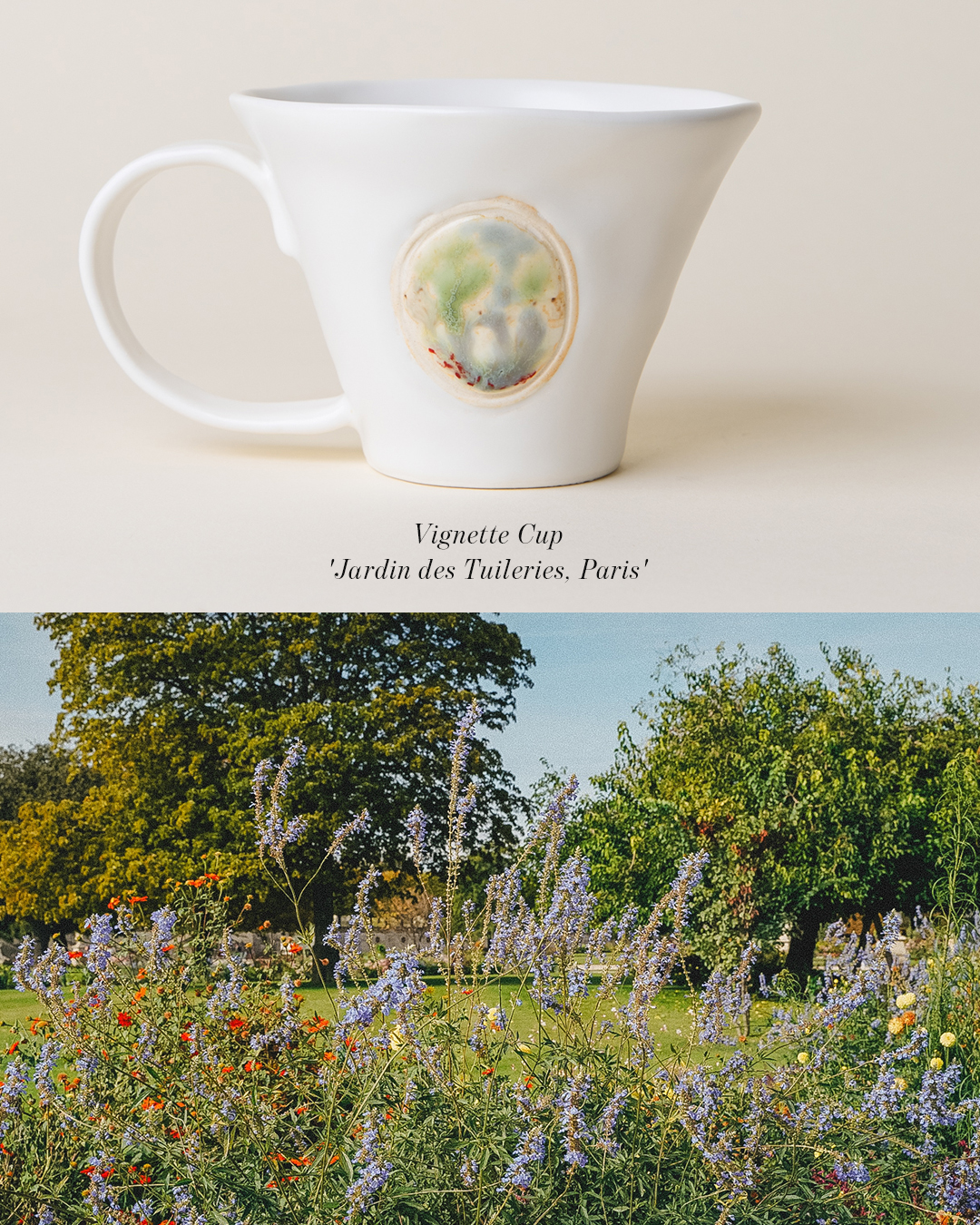 'Vignette(비네트)'는 사진의 가장자리를 어둡게 하거나 흐릿하게 만드는 효과를 의미하기도 하지만, 동시에 책이나 영화 속 짧지만 강렬한 인상적인 장면을 뜻하기도 합니다. 이 컵은 그런 ‘비네트’처럼, 작은 프레임 속에 담긴 농밀한 풍경 한 조각을 표현하고자 했습니다.