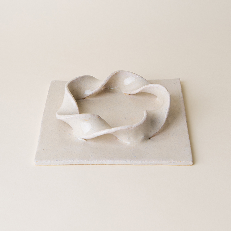 슬로렌스 대표작인 링베이스의 꼬임 포인트를 넣은 타일 형태의 아트웍으로, 2025년 8월에 윤현상재에서 전시했던 작업입니다. 벽에 기대어 오브제로 사용하시거나 눕혀서 트레이로 사용하실 수 있습니다.