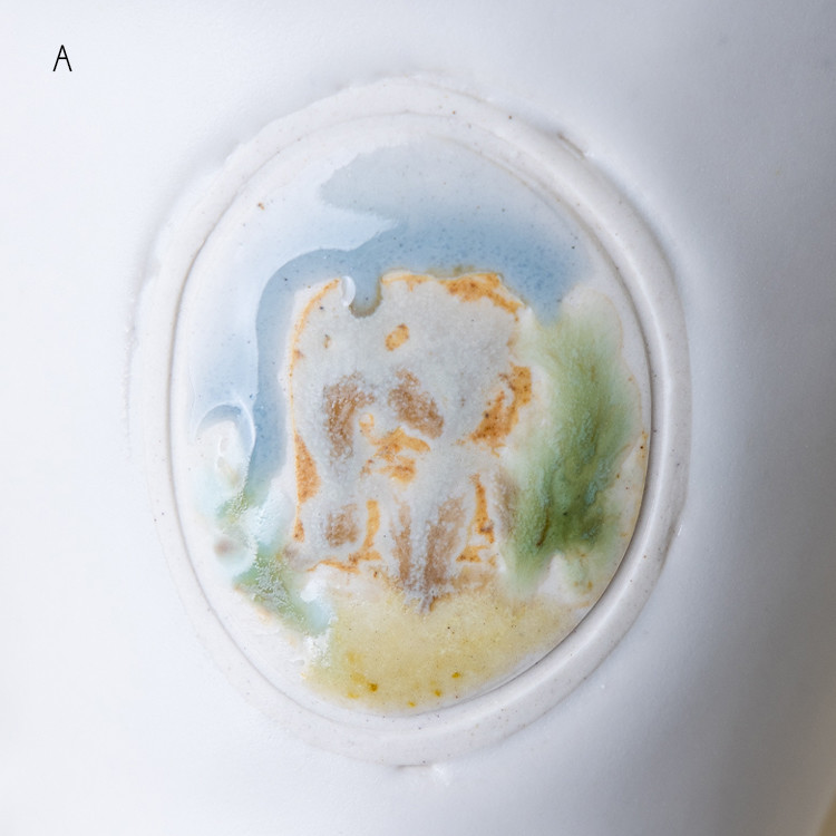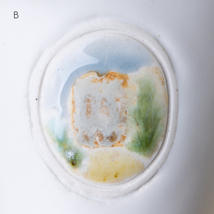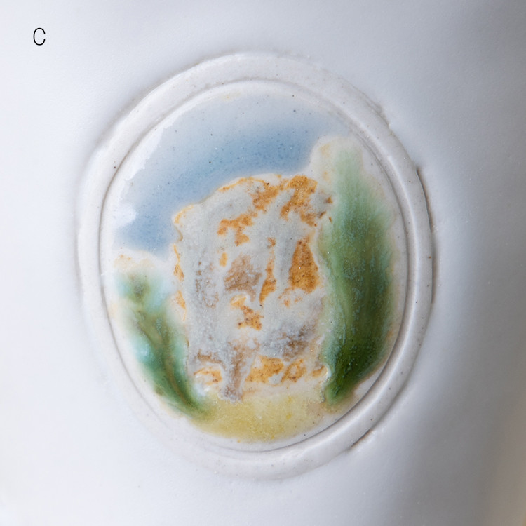 동일한 유약 드로잉 이지만 유약의 두께나 가마 내에서 받은 열의 차이로 조금씩 다르게 표현된 3점이 준비되어 있습니다. 옵션 A,B,C 중 선택하실 수 있습니다.