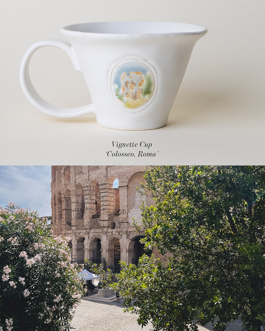 'Vignette(비네트)'는 사진의 가장자리를 어둡게 하거나 흐릿하게 만드는 효과를 의미하기도 하지만, 동시에 책이나 영화 속 짧지만 강렬한 인상적인 장면을 뜻하기도 합니다. 이 컵은 그런 ‘비네트’처럼, 작은 프레임 속에 담긴 농밀한 풍경 한 조각을 표현하고자 했습니다.