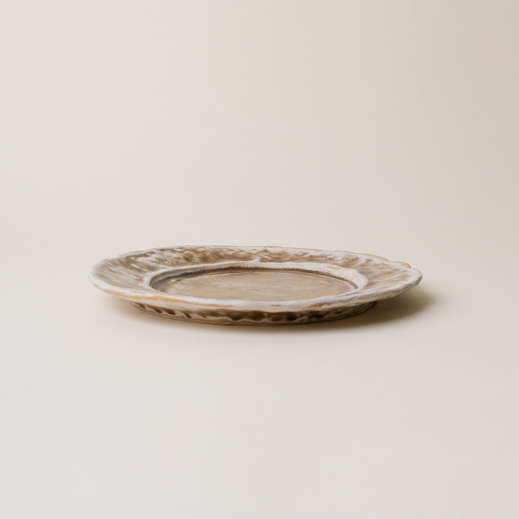 하나하나 손으로 눌러 형태를 잡기 때문에, 각 접시는 크기와 디자인이 조금씩 다릅니다.
