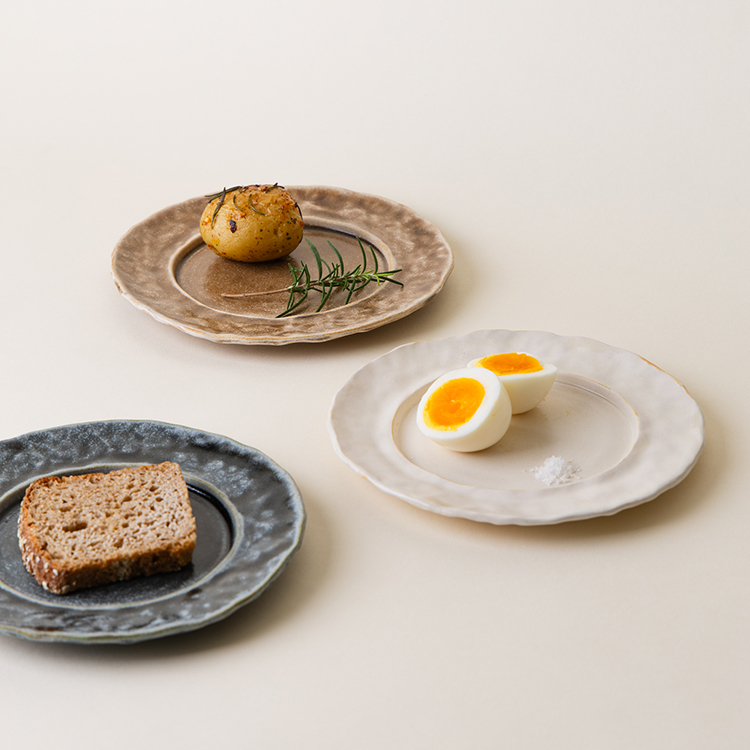 하나하나 손으로 눌러 형태를 잡기 때문에, 각 접시는 크기와 디자인이 조금씩 다릅니다.