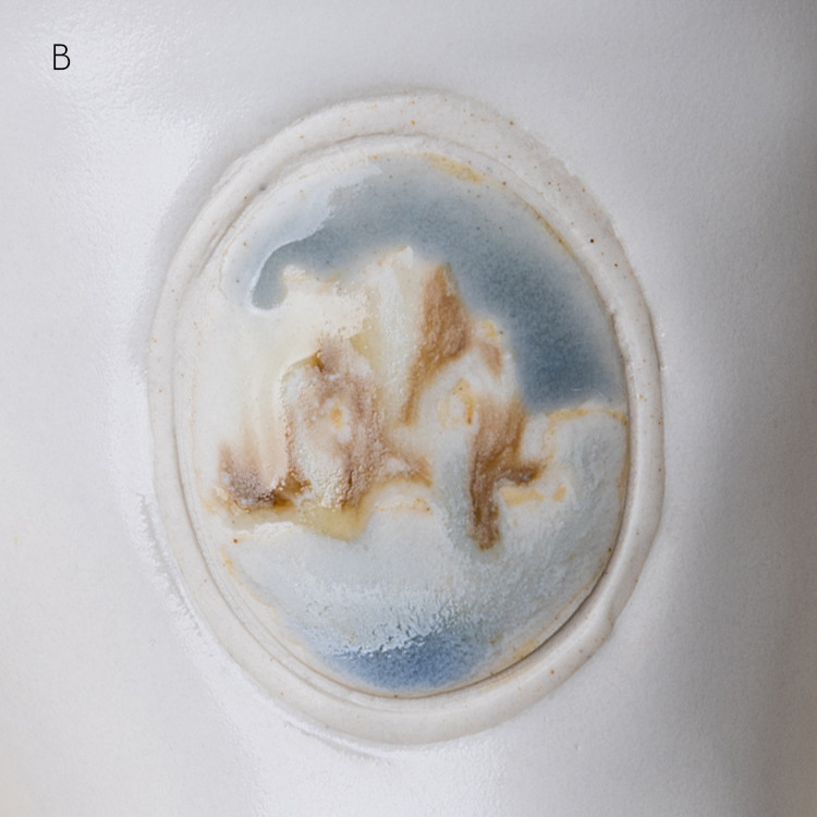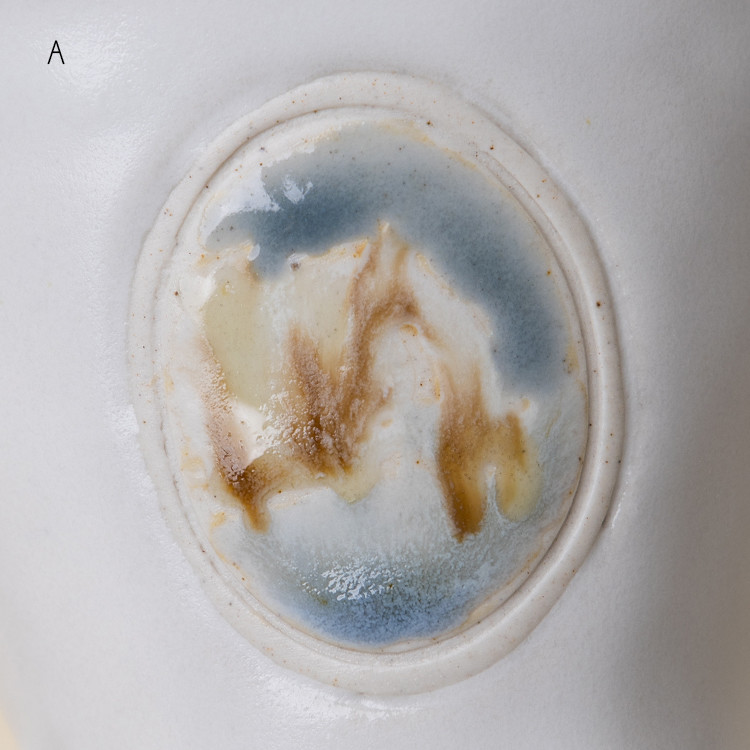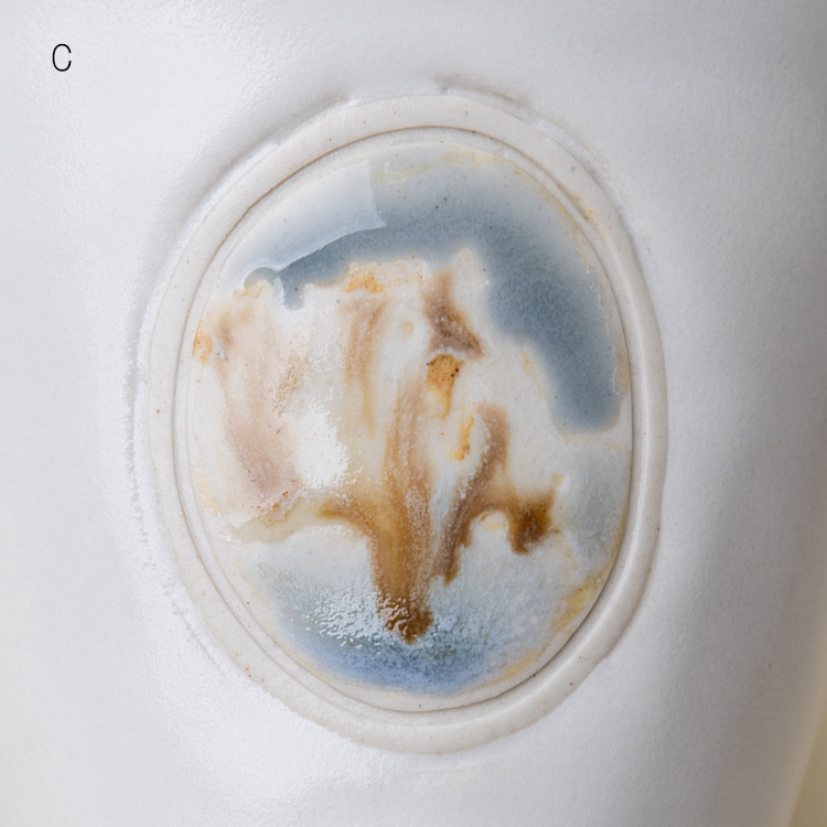 동일한 유약 드로잉 이지만 유약의 두께나 가마 내에서 받은 열의 차이로 조금씩 다르게 표현된 3점이 준비되어 있습니다. 옵션 A,B,C 중 선택하실 수 있습니다.