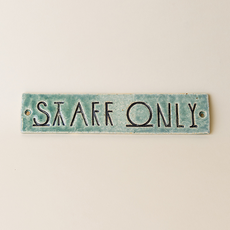 판 작업과 스탬핑 기법으로 제작한 도자기 사인입니다.